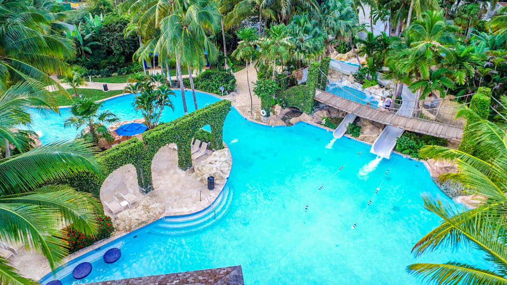 The all inclusive Hilton Rose Hall Resort and Spa is situated on the famous 18th-century Rose Hall Plantation and occupies an exclusive oceanfront location in Montego Bay. Lounge by the sparkling pool or kick things up a notch at the on-site Sugar Mill Falls Water Park with numerous slides, a winding lazy river and convenient poolside wait service. Younger guests will keep busy at the Kids Club and Teen Zone featuring exciting activities like magic shows, movie nights and campfires. Choose from a wide range of food and beverage options, ranging from a seaside grill and a snack bar to à la carte restaurants. Retire to contemporary accommodations featuring top-notch amenities and private balconies or terraces.