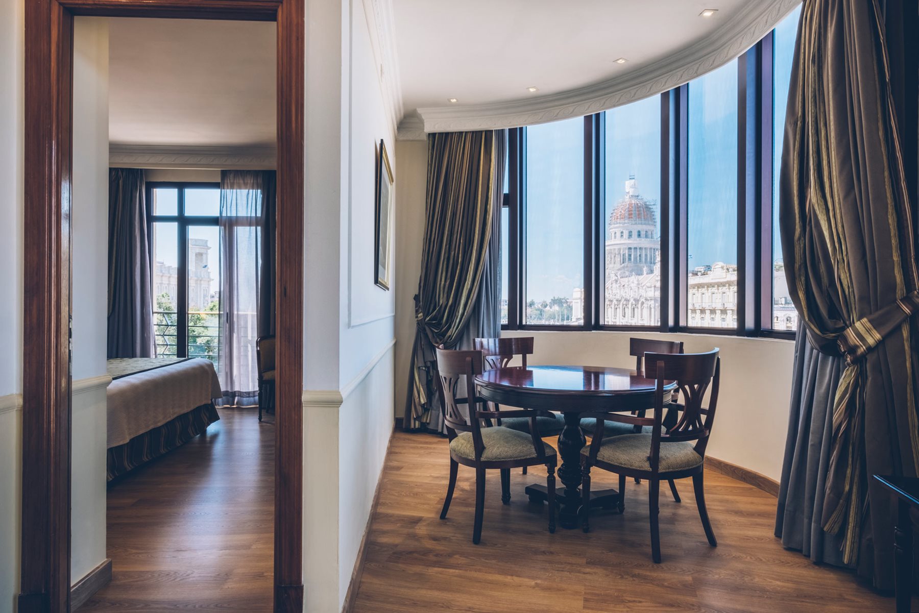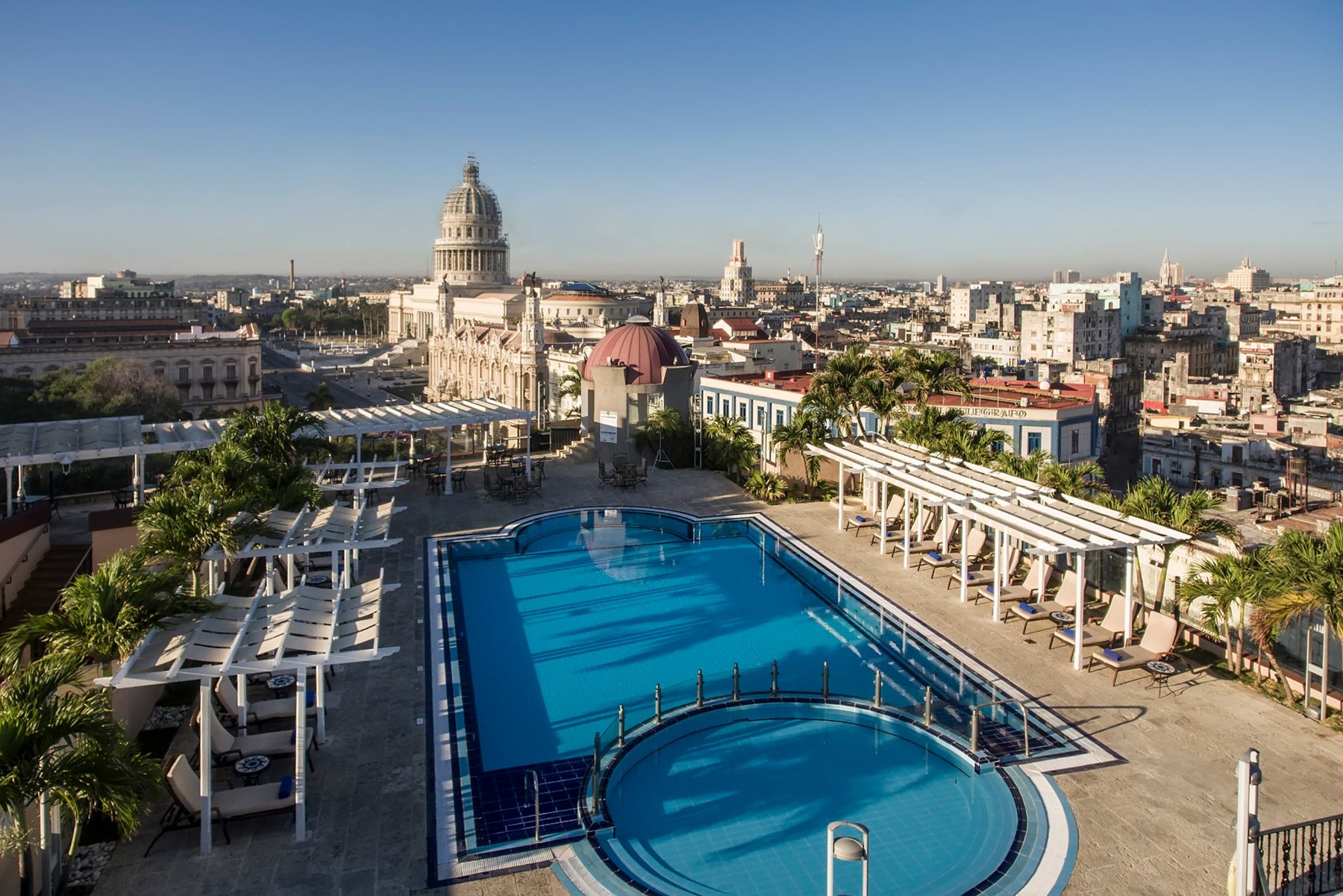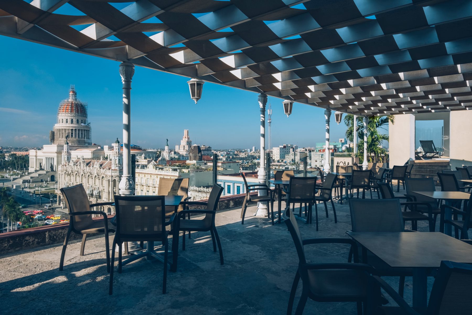 You can discover the historic centre of Havana on foot, staying in either one of Iberostar Parque Central’s two hotel buildings. From the character of this historic building to its modern design, you can walk through a decorated tunnel that is like taking a journey through time. The hotel interior gives you more than five stars, as can be seen on both upper floors which house the swimming pools and sun terrace. Take a dip in one of the pools while the light floods across the dome of the Capitolio, and you will see that any description of luxury we give you falls short. As well as the facilities, which can host conferences and meeting rooms with all the necessary equipment, Iberostar Parque Central is also a benchmark for gastronomy in the city.