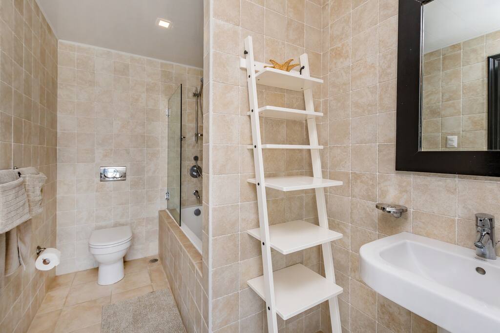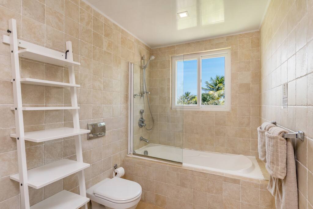 All 8 bedrooms have their own private bathroom, plenty of closet space, a flat-screen TV and air-conditioning – and can be set up with either a king bed or 2 twin beds. Most bedrooms have access to a balcony or to the terrace by the pool. Six bedrooms are located in the main house and two bedrooms are located in a separate (2-level) guesthouse.